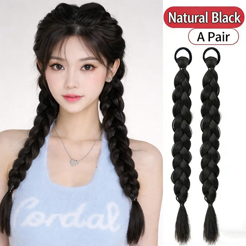 18인치 헤어 피그테일 합성 연장 머리끈 땋은 포니테일 가발 탄성 고무줄이 있는 가짜 머리 꼬리 매일 착용하기에 적합