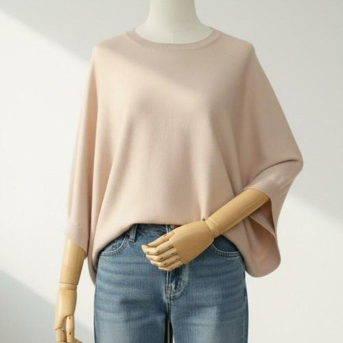 |CDTA1B3|여성용 봄철 간절기 데일리 라운드넥 루즈핏 가오리 니트 티셔츠