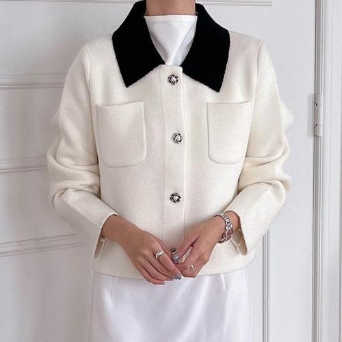 [다잇템]여자 가을하객 꽃무늬 단추 콘트라스트 자켓 (11246744A)