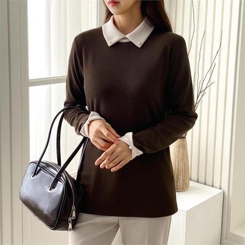 [다잇템]여자 진주 편한 롱슬리브 가을겨울 카라티 (9143142A)