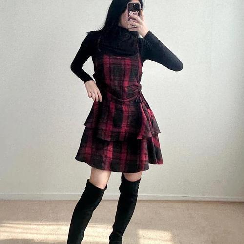 [다잇템]여자 모임룩 가을겨울 격자 코르셋 미니원피스 (11035498A)