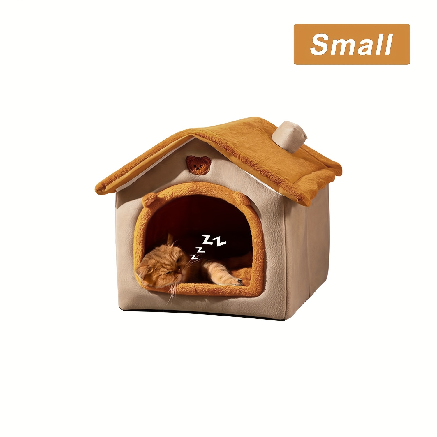 TEMU 혁신적인 소형 빌라 디자인 고양이 및 강아지 하우스 네스트 따뜻한 소형 강아지 고양이 사계절 분리형 세탁 가능 강아지 하우스 고양이 침대 애완용품 귀여운 하우스 모양 부드럽고 편안한 완전한 울타리 포장 따뜻하고 안전함