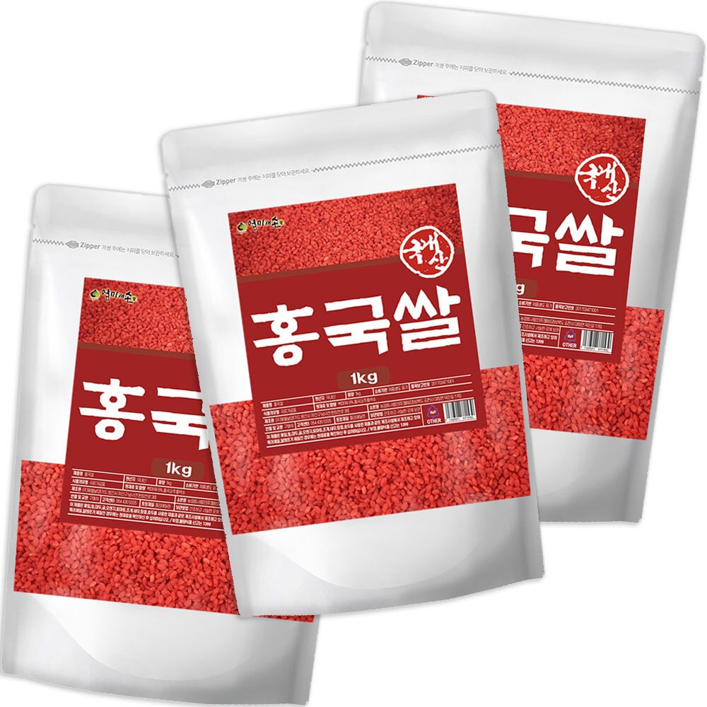 국내산 붉은 누룩 발효 백미 홍국쌀 1kg*3팩