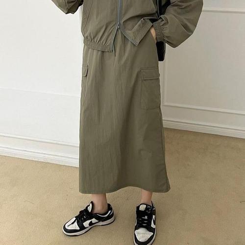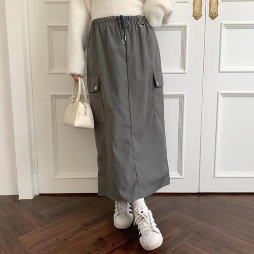도도미아 뒷트임 롱 밴딩 카고 스커트 H라인 롱치마