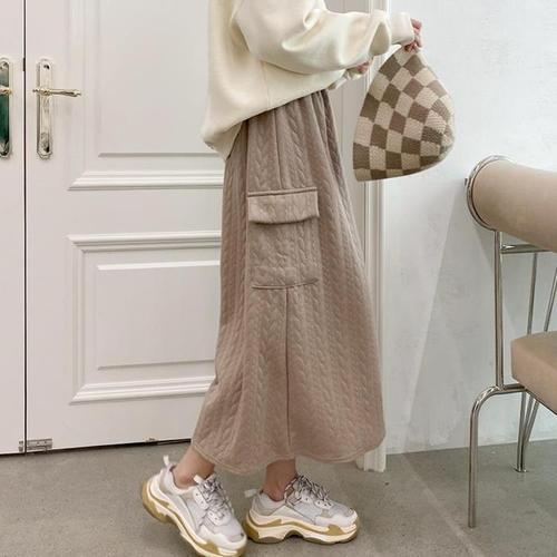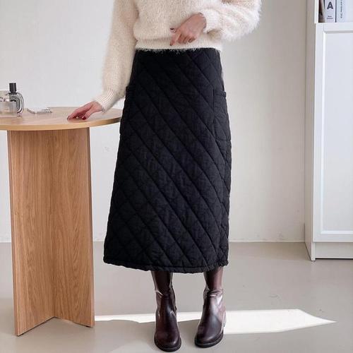 [다잇템]여자 건빵 누빔 패딩스커트롱 아가일 롱스커트 (23674006A)