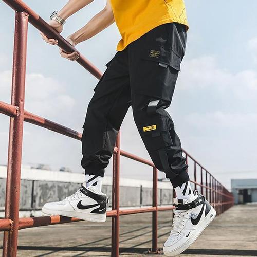 남자 검은색 카고 바지 데일리 캐주얼 조거 건빵 팬츠