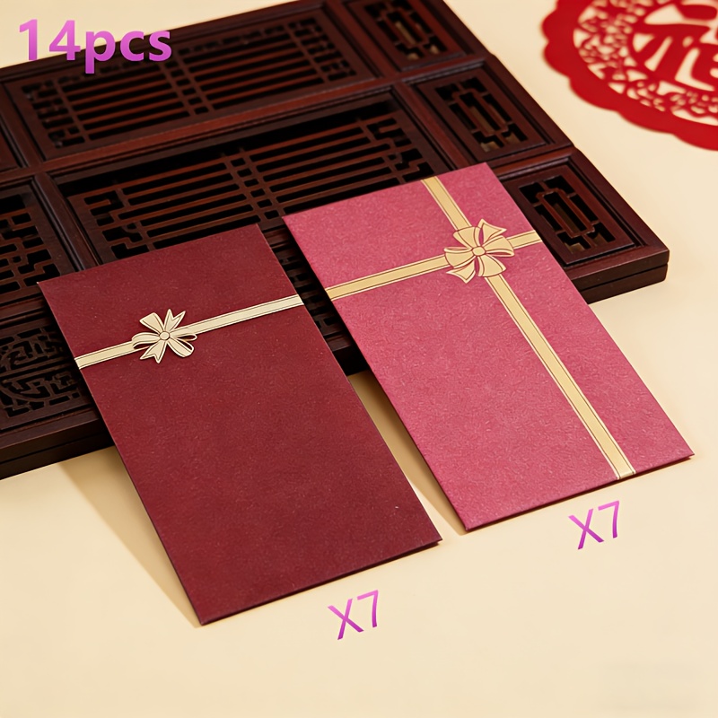 TEMU 14개 빨간 봉투, 금색 포일 나비 리본 포함 | 고품질 반광 종이 현금 봉투, 결혼식, 생일, 기념일, 어버이날, 발렌타인데이, 부활절 파티 선물용