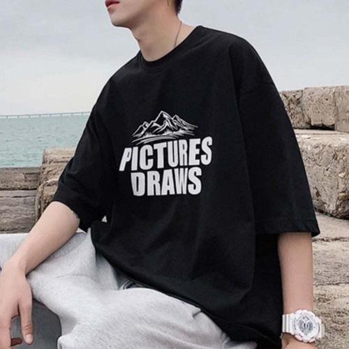 [셀럽하우스]남성 OBBQ7358 검정 반팔티 베이직 반팔 데일리 티셔츠 검정티