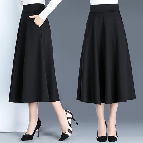 시원한 여름 여자 쿨 A라인 롱 스커트 빅사이즈스판치마 밴딩 검정 블랙