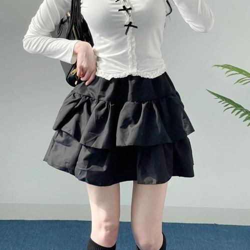 [다잇템]여자 장마룩 SS 티어드 검정 미니스커트 (16918506A)