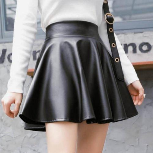 레더스커트 검정 미니 인조 가죽 플레어 치마 스판 여자 여성 플리츠 A라인