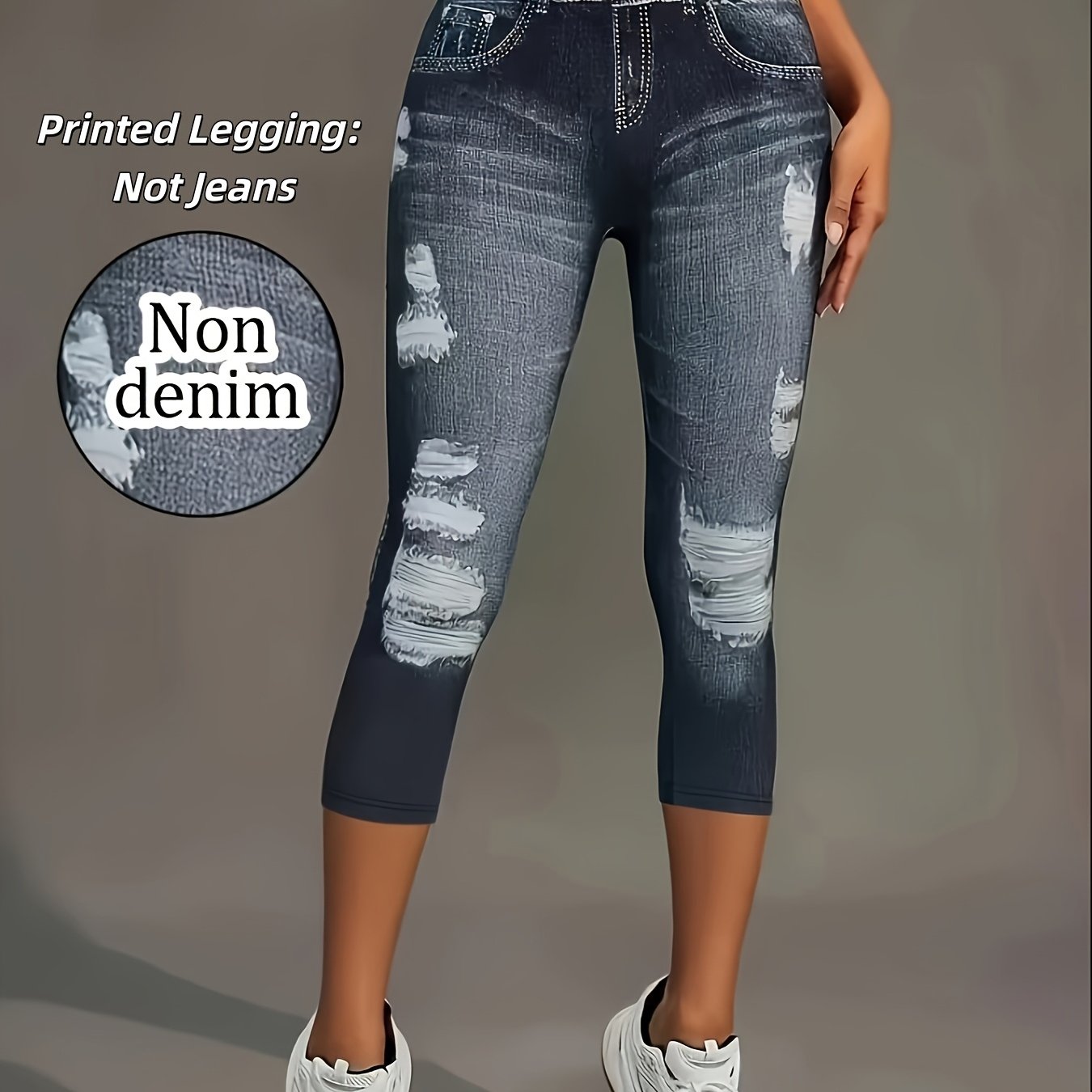 TEMU 프린트 팬츠 - 데님 소재 아님, 프린트 레깅스, 비데님 소재 여성용 쇼츠. 데님 프린트 캐주얼 레깅스, 비치 휴가 스타일 패셔너블 우아한 트렌디한 편안한 카프리 쇼츠, 다용도 봄 여름 S 요가 스트레치 삼분의 일 레깅스