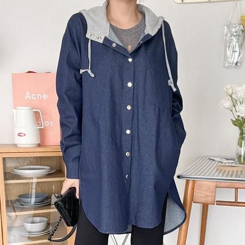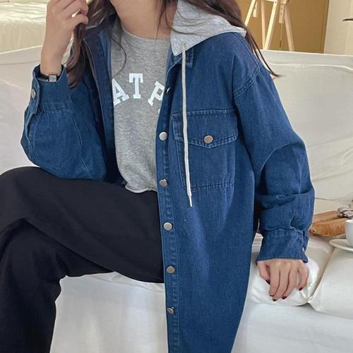 [유아몽드]여성 오버핏 후드 데님 셔츠 자켓 오버사이즈 청남방