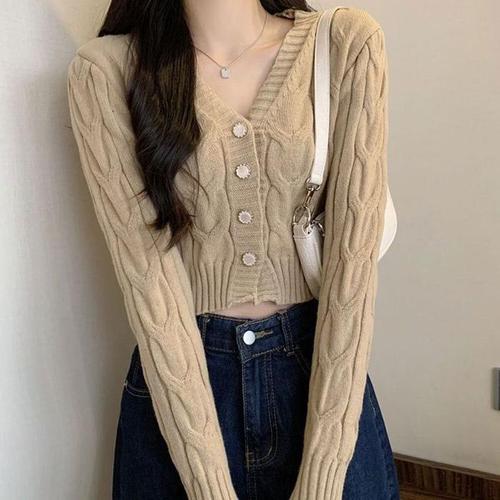 ORZQU 춘추여성 브이넥 스웨터 하프 니트 카디건 긴팔 스웨터