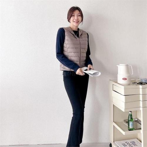 [다잇템]여성 경량 후디 집업 포켓 베이직핏 패딩 조끼 (9113058A)