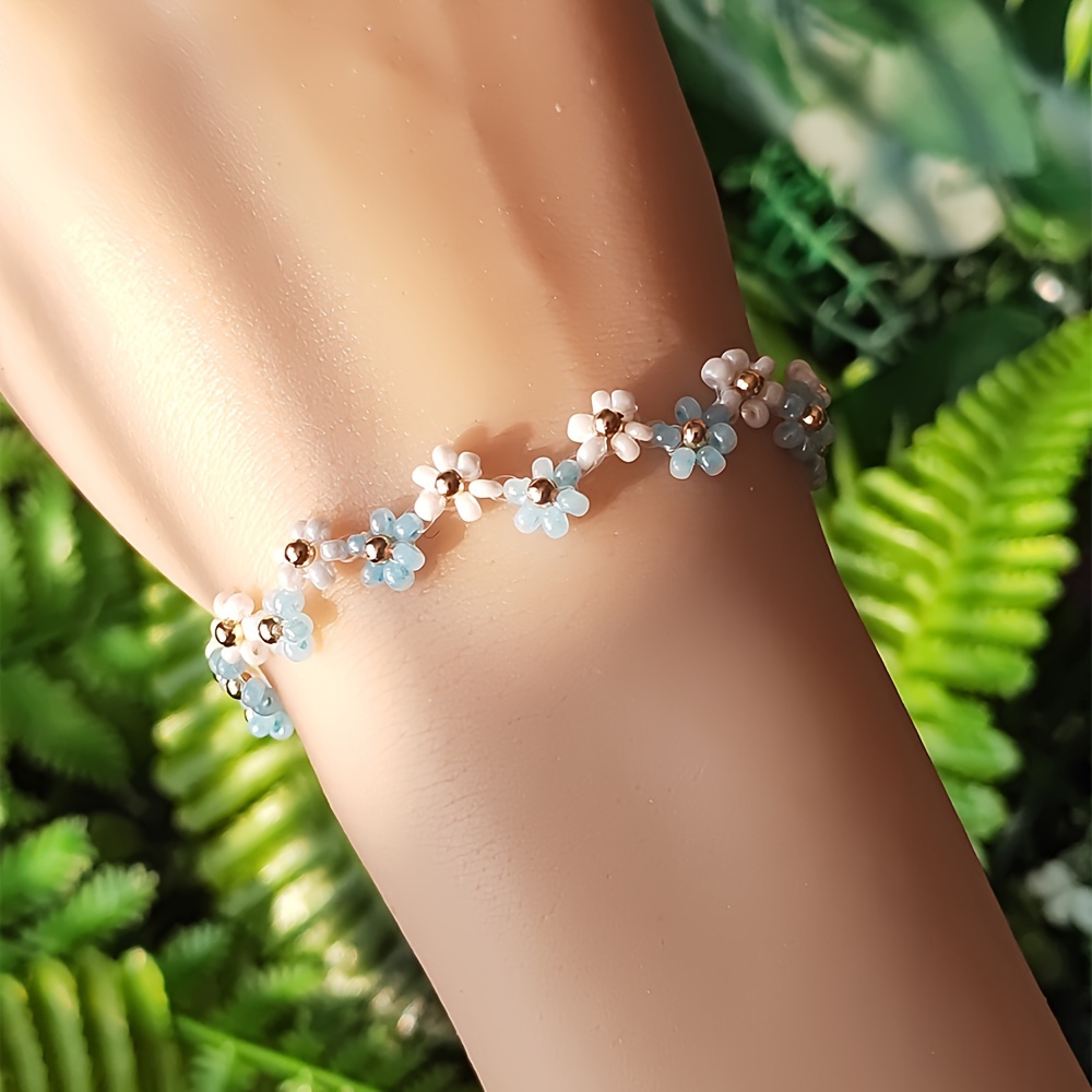 TEMU 1 스타일 수제 비즈 꽃 팔찌 - 세련되고 미니멀한 디자인, 캐주얼 스타일에 완벽한 선물