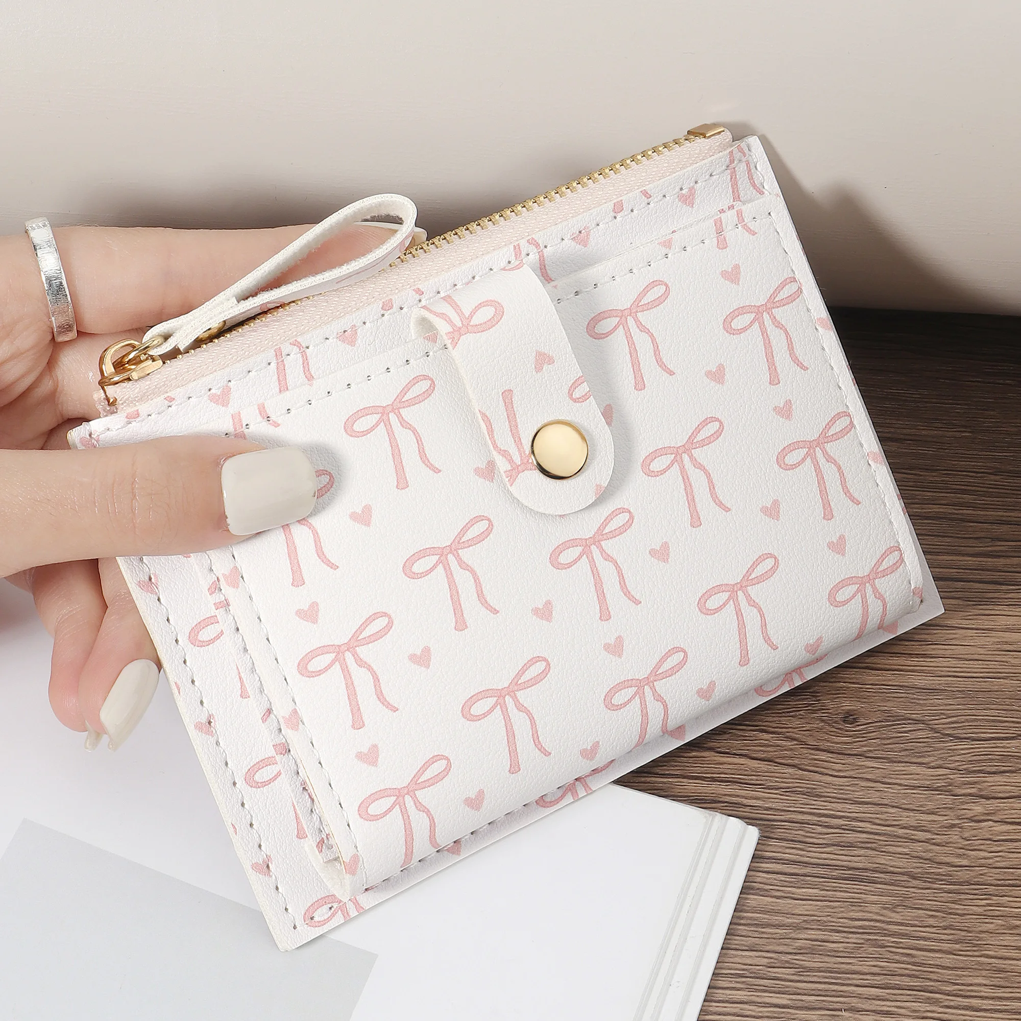 귀여운 학생 동전 지갑 카드, 심플한 꽃무늬 한국 패션 지갑 카드홀더, 여아용 휴대용 소형 수납 가방