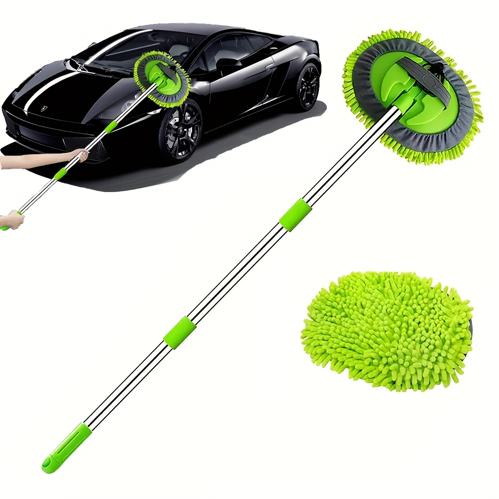 TEMU 47.5인치 마이크로화이버 자동차 세차 브러시 모프 세트, 셔닐 마이크로화이버 스펀지 더스터 무페인트 손상 무스크래치, 긴 손잡이 키트 2in 1 자동차, 트럭, SUV, RV, 트레일러, 보트 청소용