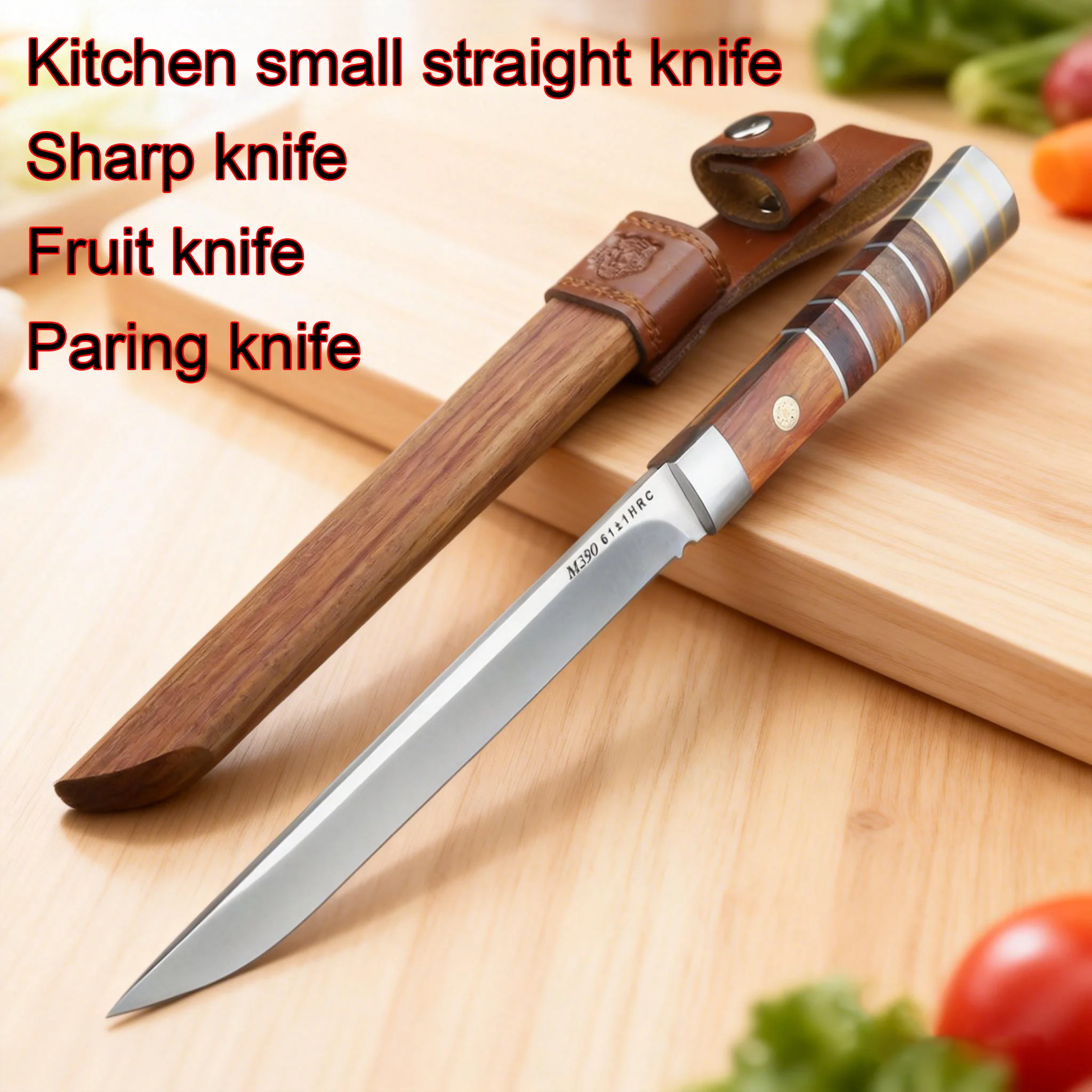 고경도 스테인리스 스틸 주방칼, 가죽 칼집이 있는 전문가용 과일칼, 고기 자르기 및 요리에 이상적