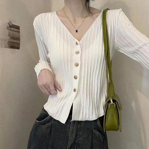 마켓피아 여성용 슬림핏 V넥 골지 니트 가디건
