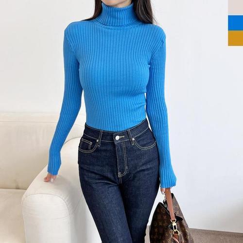 [옷자락]여성 골지 하이넥 긴팔 티셔츠 겨울 니트 이너 슬림핏