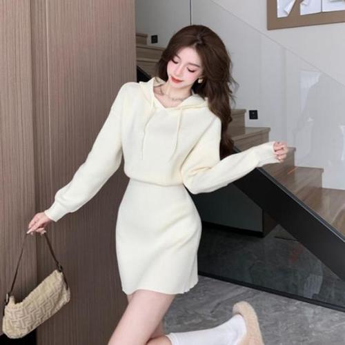 [오너클랜]인기상품 후드 골지 슬림핏 니트 미니 드레스 여성 원피스 [WFLNGFA_260204]
