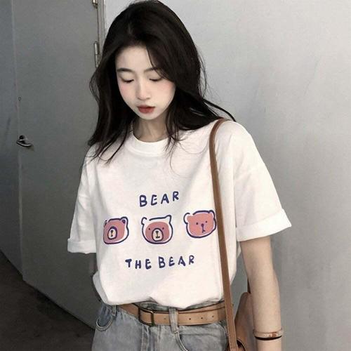 [오너클랜]인기상품 여성용 여름 캐주얼 티셔츠 반팔 곰돌이 프린트 데일리웨어 [WFLKZ77_260304]