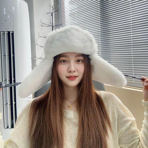 왕눈이 귀달이 모자 화이트 따수운 캐주얼 털 방한 WFHS018