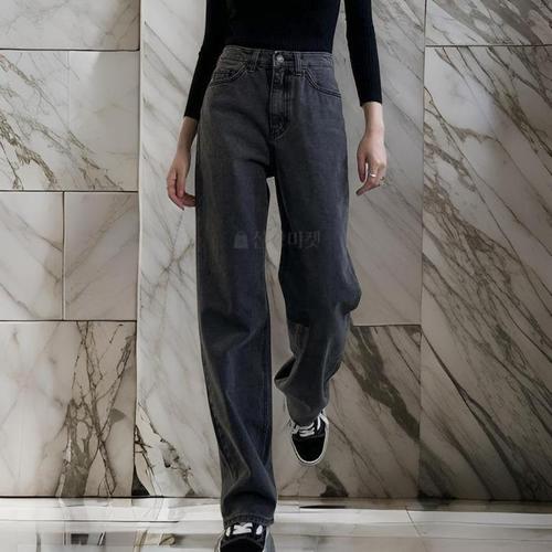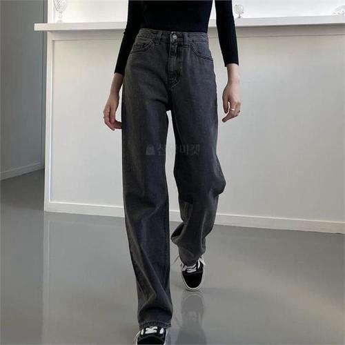 [다잇템]여자 Y2K 통바지 워싱 그레이진 보온 통 청바지 (9313934A)