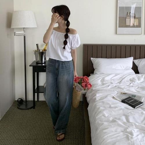 [다잇템]여자 Y2K 그레이진 워싱 통 통바지 청바지 (29950411A)