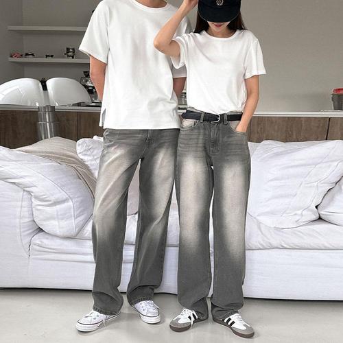 남여공용 그레이틴 워싱 와이드 데님 팬츠 UJ-JEA-8061
