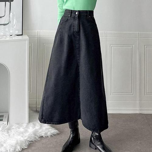 [다잇템]여자 블랙진 기모청치마 에이라인 롱스커트 (28406285)