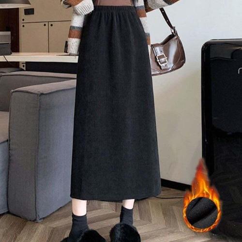여자 2컬러 기모안감 겨울 밴딩 H라인 롱스커트 골덴 WFLQ856
