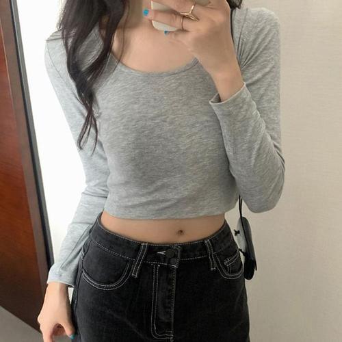 [다잇템]여성 크롭티 롱슬리브 탱크 U넥 디자인 기본티 (11091049A)