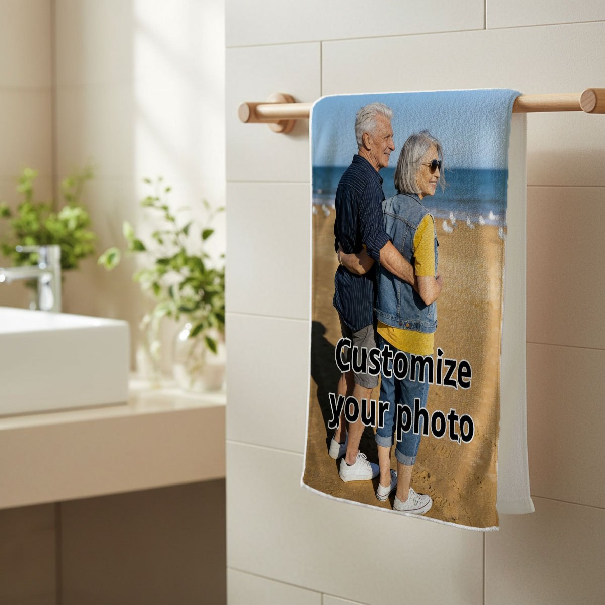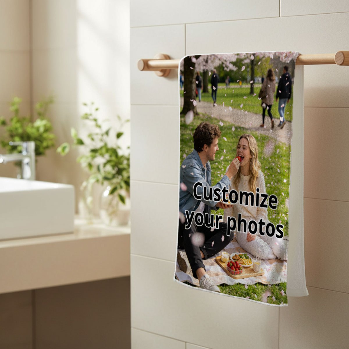 TEMU 1개, 맞춤형 긴 타월, 가볍고 편리함, 가정용, 발렌타인데이, 생일 선물, 재사용 가능, 창의적인 디자인, 빠른 건조, 부드러운 촉감, 테마적인 즐거운 순간, 부드럽고 통기성 좋음, 세탁기 사용 가능, 기숙사, 기념일
