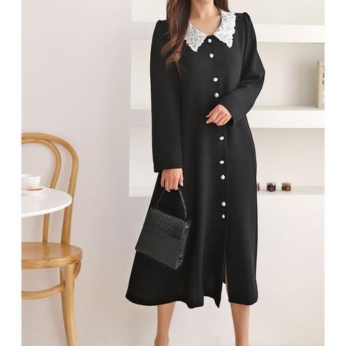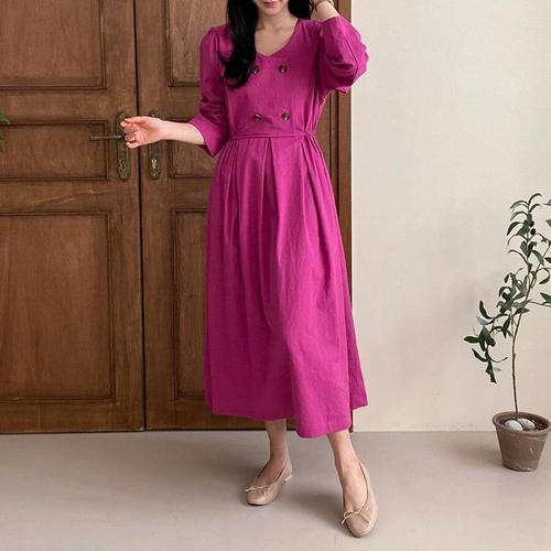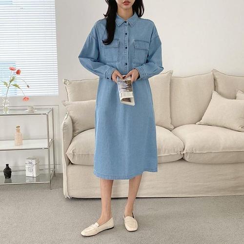 [주식회사 브이와이][JHQRJVRQ_4B]루즈핏 임부복원피스 단추 긴팔 롱 ar24301 (24093439A)