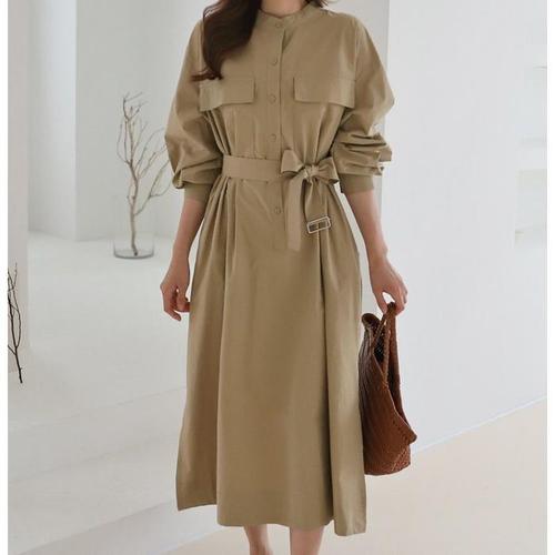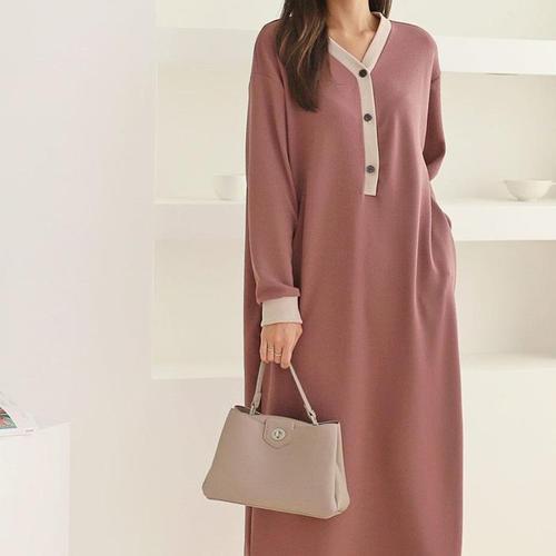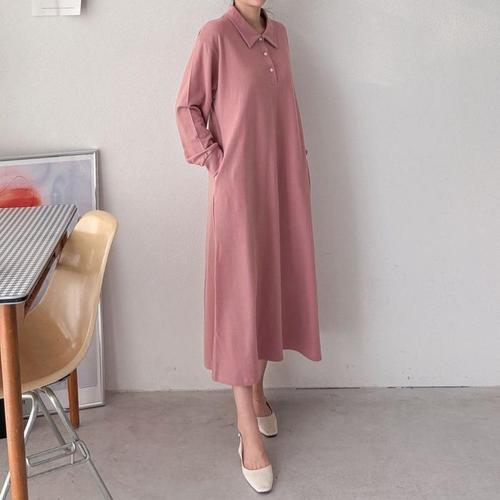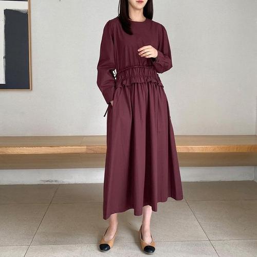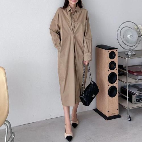 [주식회사 브이와이][JHQRJVWI_4B]루즈핏 긴팔 롱 원피스 ha24325 (24094617A)