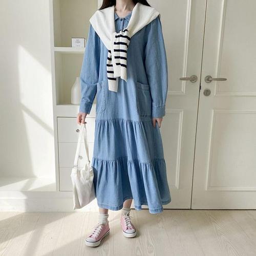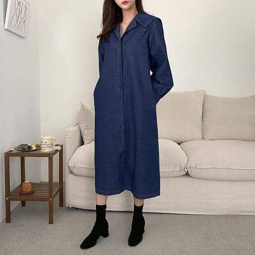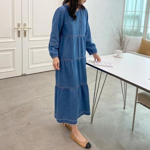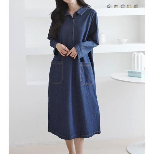 [주식회사 브이와이][JHQRJVI7_4B]루즈핏 바이 롱원피스 청 긴팔 롱 ha24362 (24095267A)