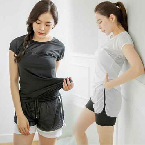 [다잇템]여자 액티브 망사 펀칭 슬리브리스 세트 (11621771A)
