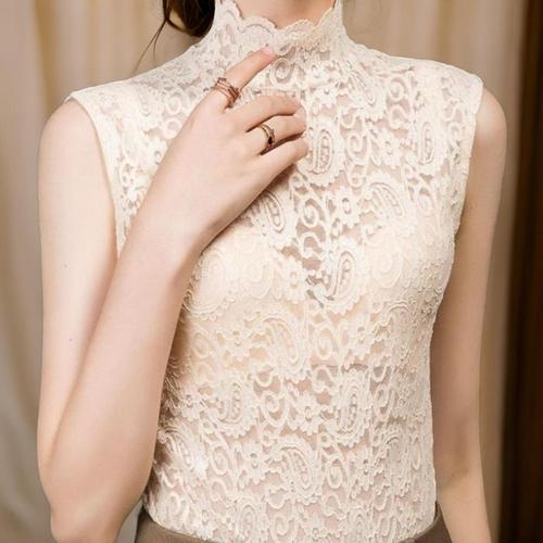 [다잇템]여자 폴라넥 SS 망사 그런지 레이스 나시 (28919622A)