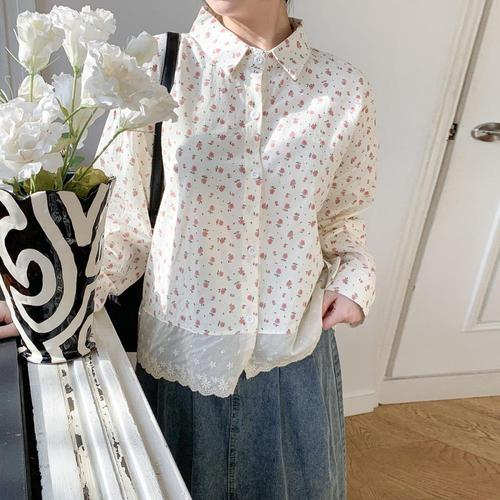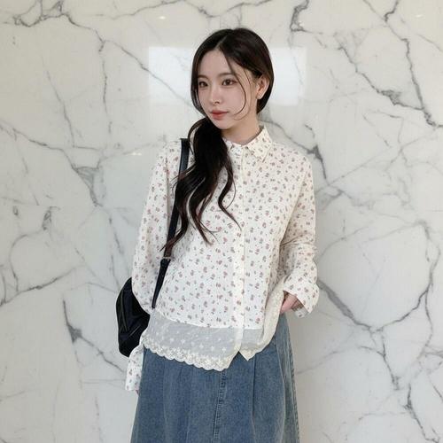 [미라클세븐]여성용 레이스 꽃무늬 루즈핏 면혼합 셔츠