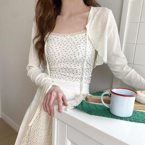 [다잇템]여자 슬리브리스 꽃무늬 페미닌 숏가디건 세트