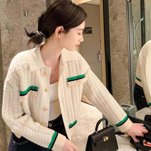 [셀럽하우스]여자 AIJT9512 귀여운 봄 가을 데일리 꽈배기 패턴 니트 가디건
