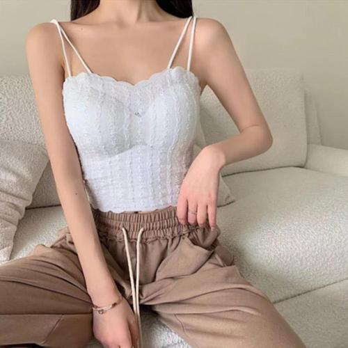 [다잇템]여성 레이스 꽃무늬 크롭탑 프릴 캐미솔 끈나시 (10956739A)