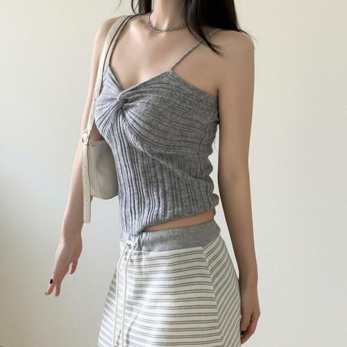 [미라클세븐]여성 브이넥 슬림핏 니트 끈나시 탑