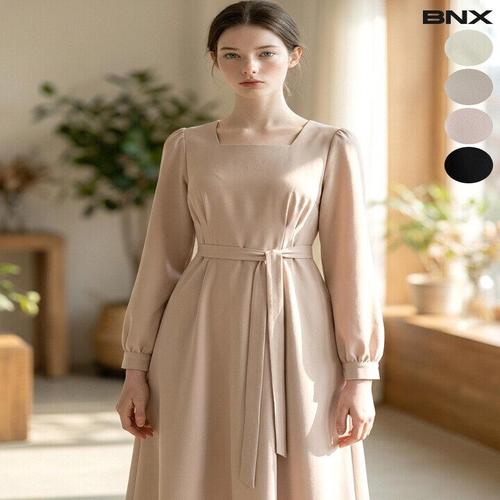 [비엔엑스]여성 스퀘어넥 리본끈 플레어 원피스