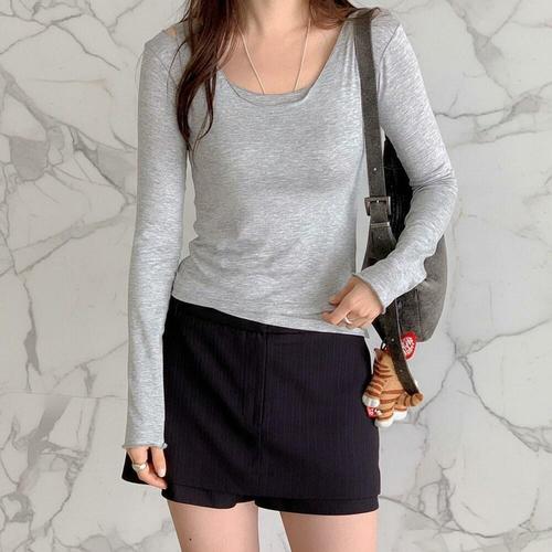 [미라클세븐]여성 슬림핏 레이어드 나시 라운드 긴팔 티셔츠