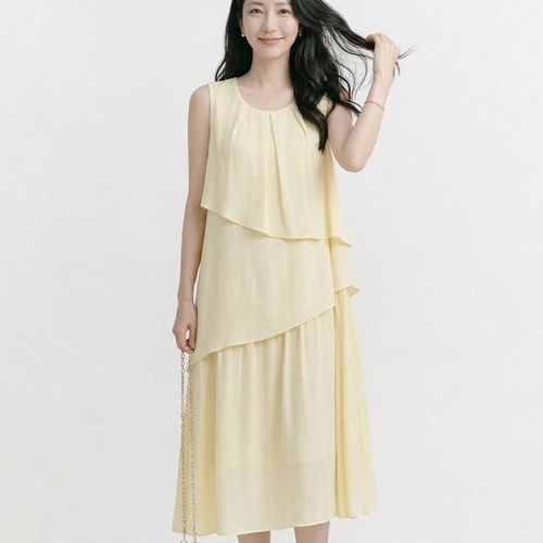 여성 이단 티어드 나시 원피스 캐주얼 봄 여름 가을 레이어드 민소매ops
