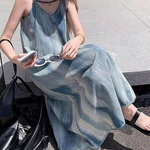 나염원피스 원피스 나염 잉크 그라데이션 여름 썸머 롱 끈원피스