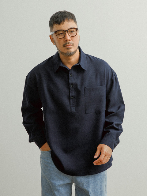 [러기드하우스] 이브닝 오버핏 반오픈 셔츠 네이비